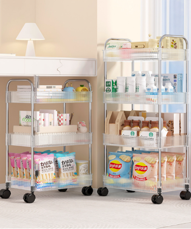 [🎀🫧배스킷증정/신상할인특가] 감성 투명 이동식 트롤리 2단 3단 4단 화장품 정리함 파우치 화장대 책상 정리 화장품 수납 수납장 이동식 선반 수납함 서랍 바퀴 욕실 주방