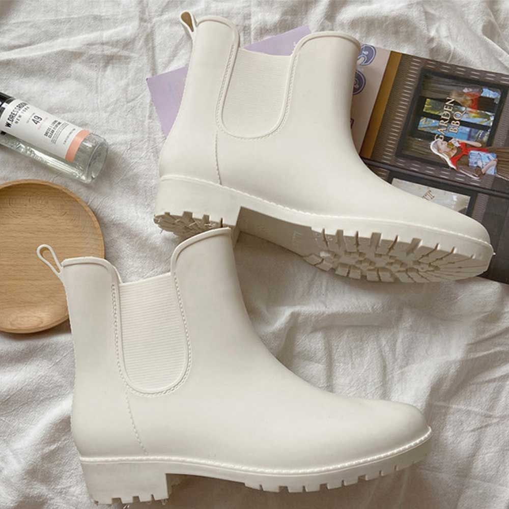 여자 여름 바닷가 해변 캠핑 숏 발목 레인 부츠 코디