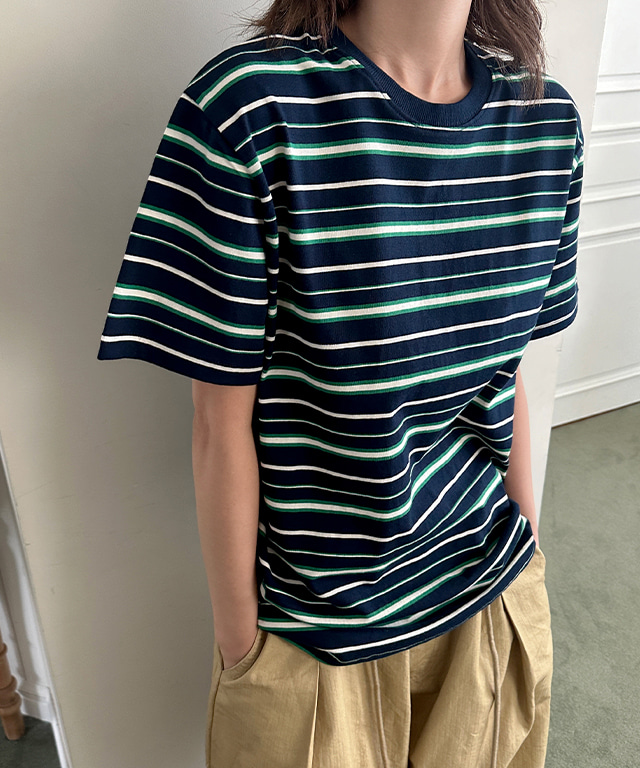 스칼렛 스트라이프 오버핏 반팔 티셔츠