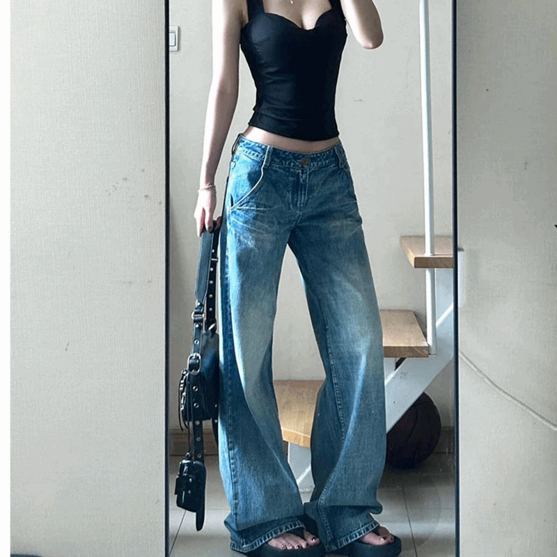 [✨로우라이즈✨/여름팬츠] 여름신상 여름바지 얇은바지 시원한 로우웨스트데님 로우라이즈데님 Y2K 트렌디 데님와이드 데일리룩 데이트룩 꾸안꾸 개강룩 휴가룩 로우웨스트 와이드 팬츠