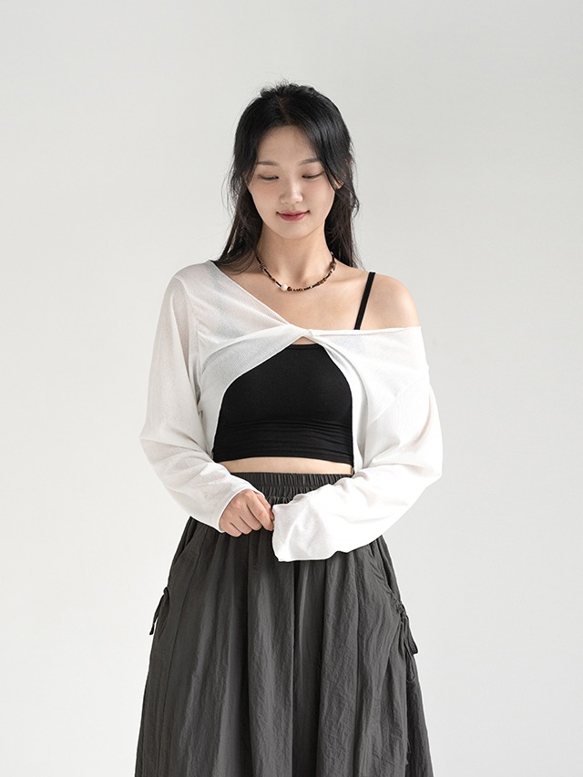 빅사이즈 55-99 샤베로 꼬임 레이어드 볼레로 크롭 긴팔 티셔츠 휴양지 룩 워터밤 흠뻑쇼