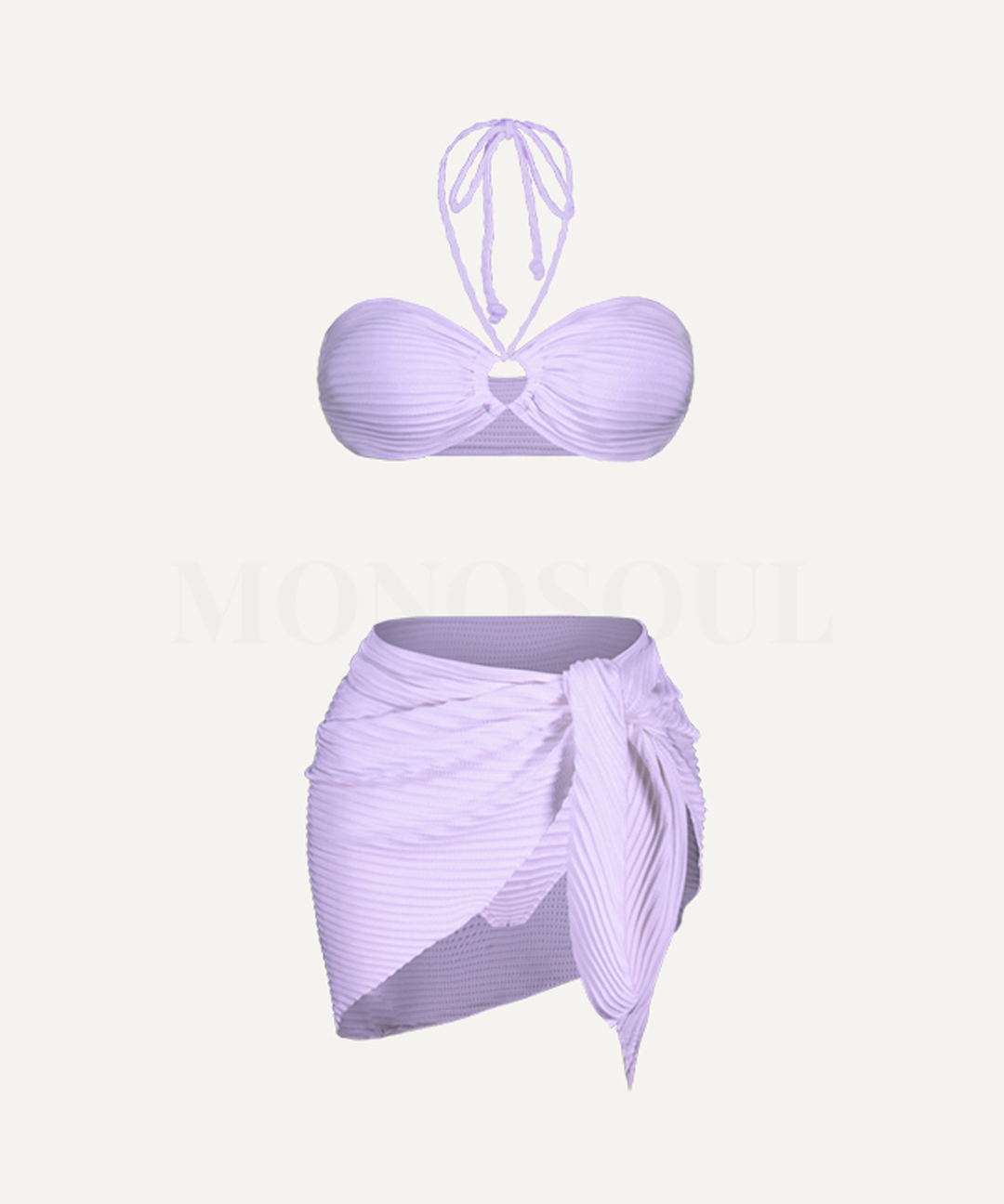 [당일출고] 자동몸매보정/ F컵까지 가능! 츄잉 3피스 홀터 비키니 수영복 랩스커트 세트