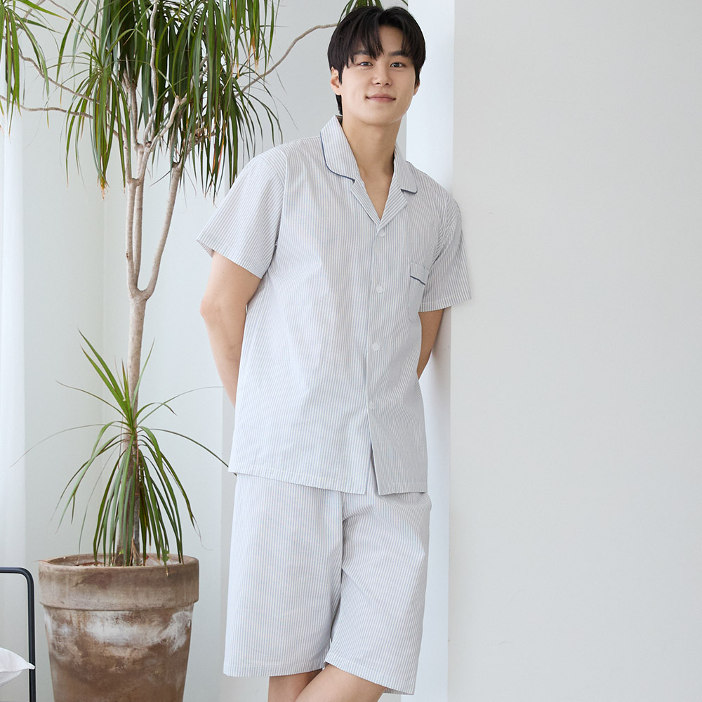 집에서입는 여름잠옷 남자홈웨어 순면 반팔잠옷 스트라이프 파자마세트