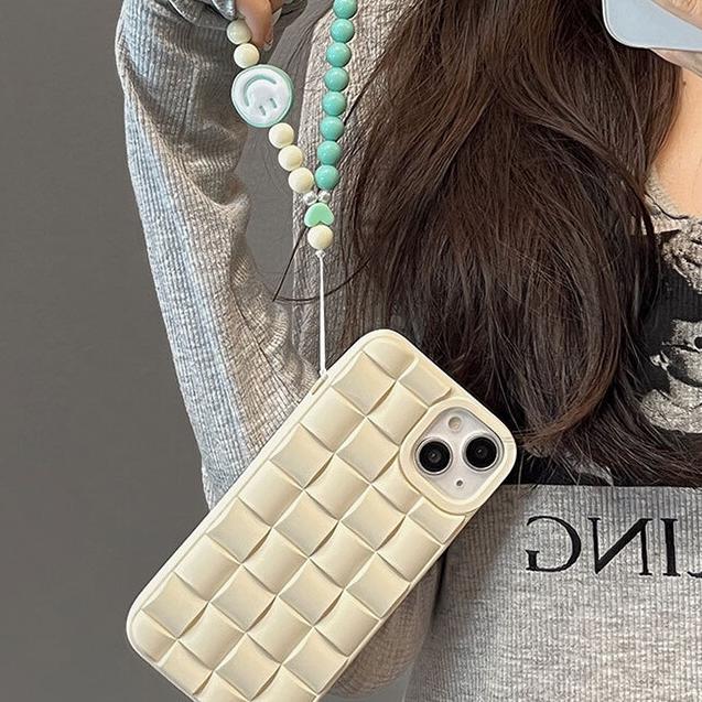 당일⭐ 체크 스트랩 세트 아이폰15 프로 케이스 화이트 유니크 민트 포인트