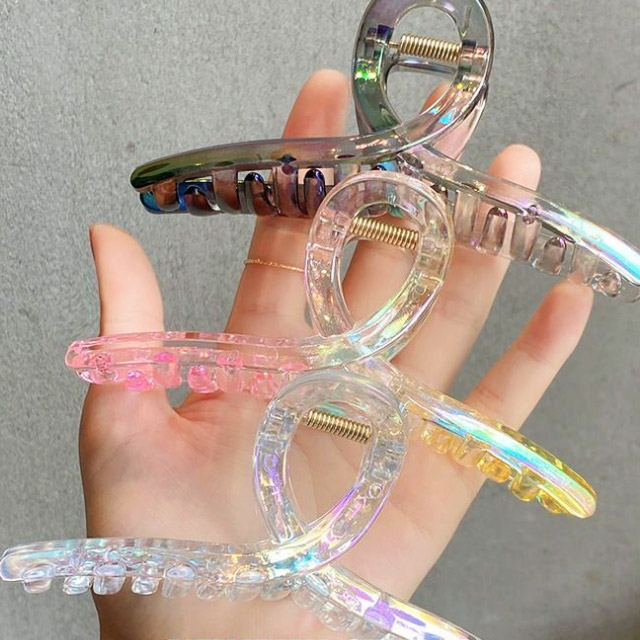 1+1 레인 그라데이션 홀로그램 올림머리 명품 프랑스 헤어 긴 머리집게핀