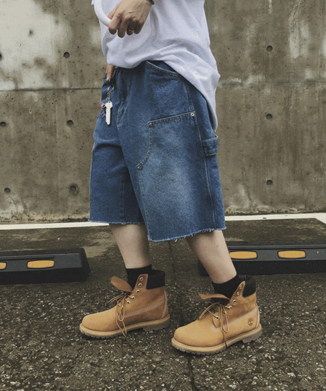 드라이브 더블니 컷팅 데님 팬츠 - 와이드 Y2K 오버핏팬츠 더블니반바지 유니섹스 여름바지 캐주얼 하프팬츠 더블니반바지 와이드핏 벌룬팬츠 반바지데님 카펜더반바지 더블니카펜더