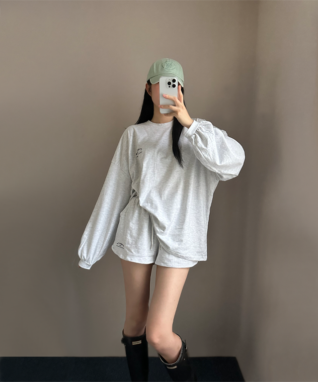 (백메,검) 움파 긴팔반바지세트 트레이닝복 얇은긴팔티셔츠 꾸안꾸옷 통통녀 편한추리닝