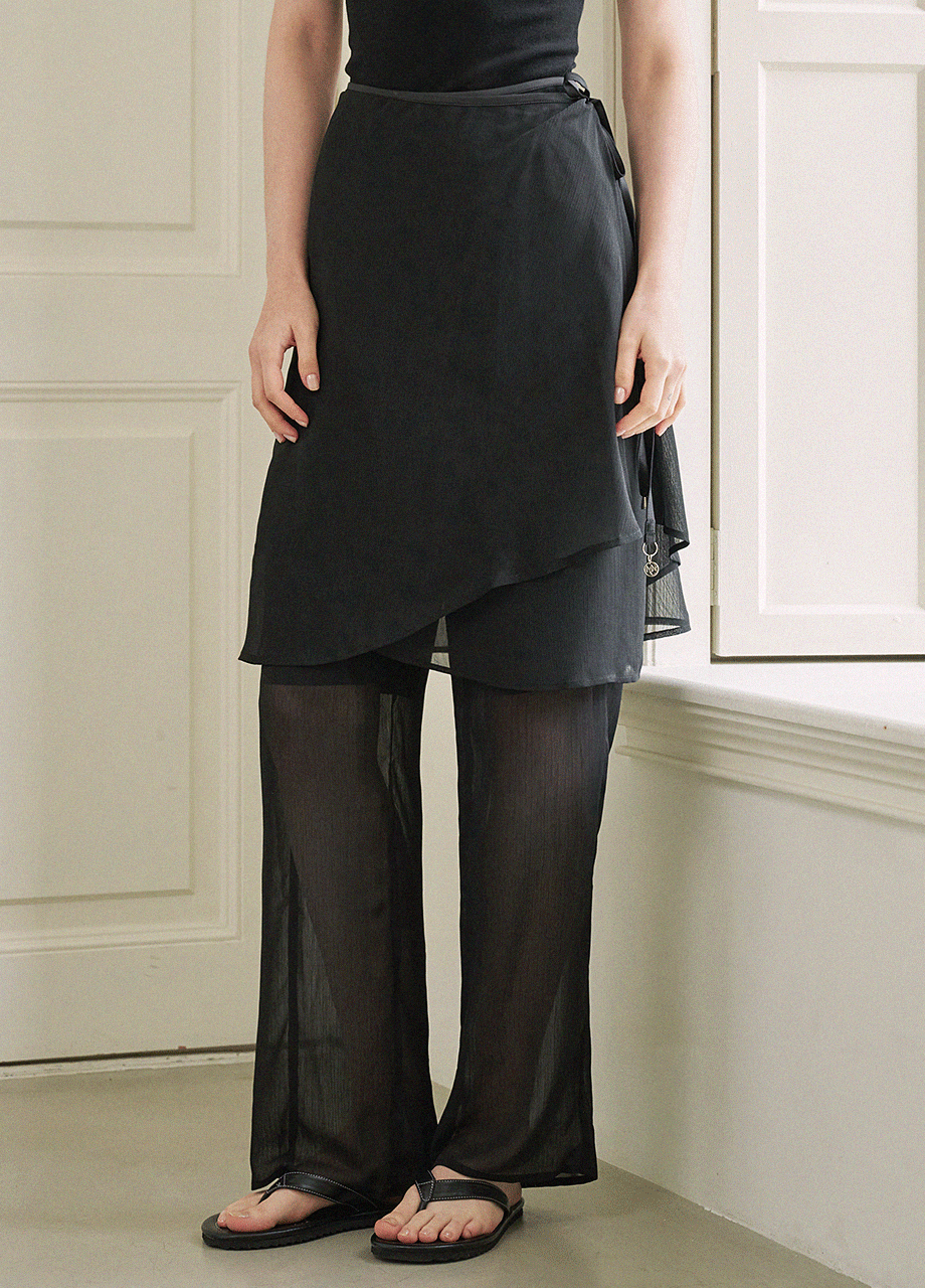 [25-36] Portulaca Chiffon Pants+Wrap Skirt Setup 포르툴라카 쉬폰 팬츠-랩 스커트 셋업 (봄-여름-꾸안꾸-마실룩-데일리룩-밴딩팬츠-랩스커트-셋업-레이어드-시스루-유니크-와이드팬츠-빅사이즈-자체제작)