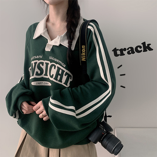 [하이틴/키치룩/블록코어] 인이 오버핏 배색 라인 레터링 맨투맨 (5color)