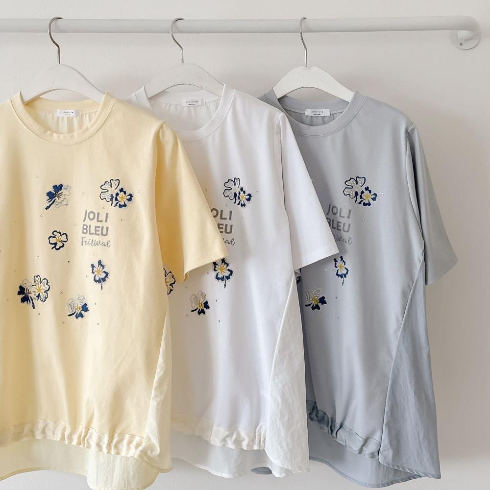 시원한 꽃무늬모양 5부 반팔 셔링 티셔츠