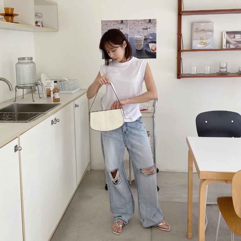 머슬핏 여자나시 스판민소매 찰랑 검정 일자어깨 흰나시