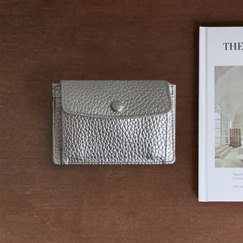 국산 실버 소가죽 단추 포켓 명함 카드지갑 동전