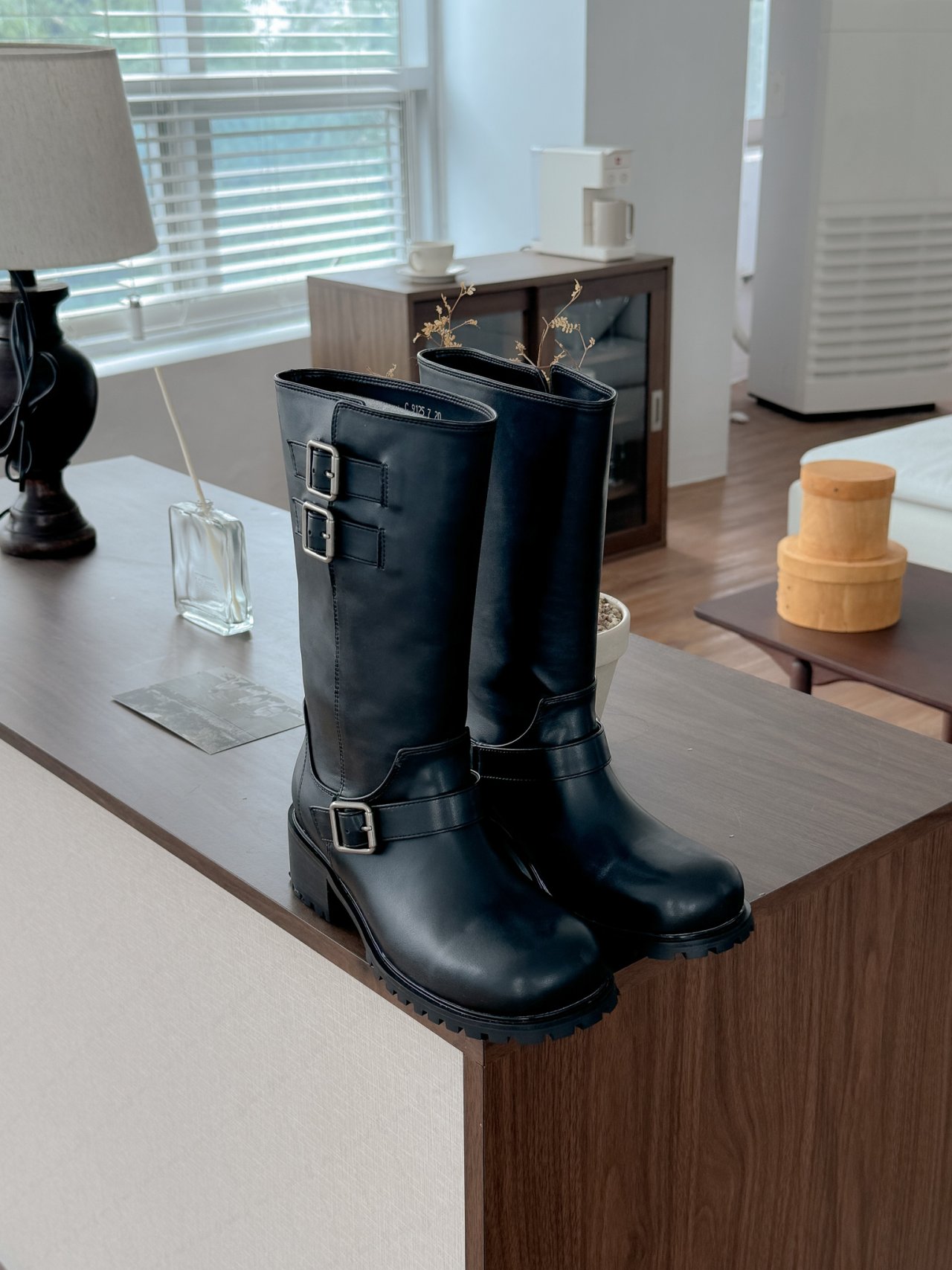[24fw] 블랙 시크 더블 버클 하프 미들 부츠