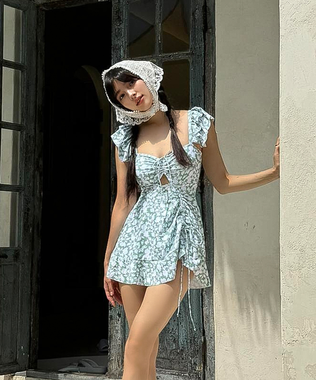 플라워 셔링 원피스 수영복 2컬러 M~XL