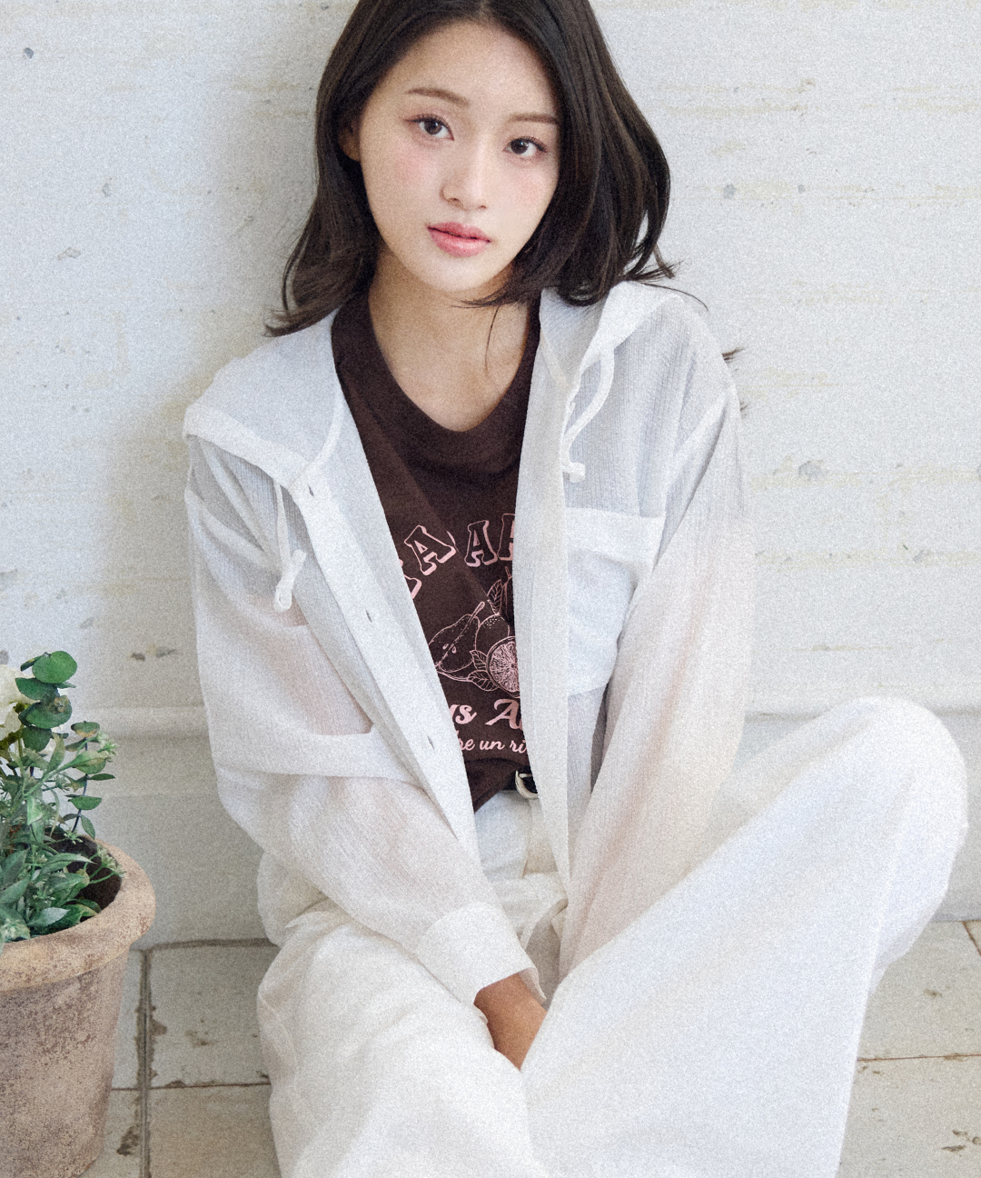[직잭단독🎀/COOL🧊/살안타템☀] 소프트 시스루 후드 셔츠 MIWYWF504C