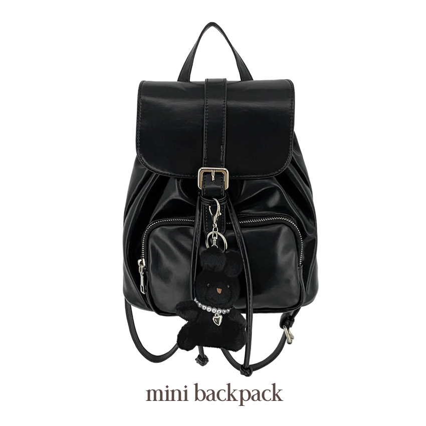 🔥 당일출고🔥글로시 복조리 포켓 레더 미니백팩 보부상 가죽 백팩 실버 가방 하객룩 화이트 크리스마스룩 연말룩 GB081