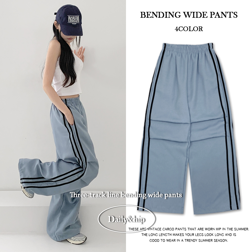 🤎가을신상*기획가[힙코디추천/핏보장🖤] *모델극찬템* 뮬러 허리밴딩 3줄 트랙 라인 핀턱 파라슈트 와이드 팬츠 #가을옷 #간절기 #트레이닝바지 - 4color