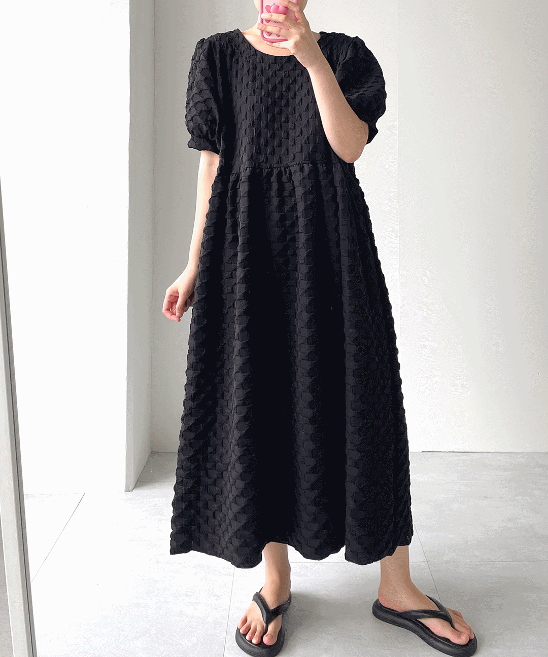 세일) 민트 엠보 사각 통통녀하객룩 키작녀 베이비돌 블랙 롱 원피스