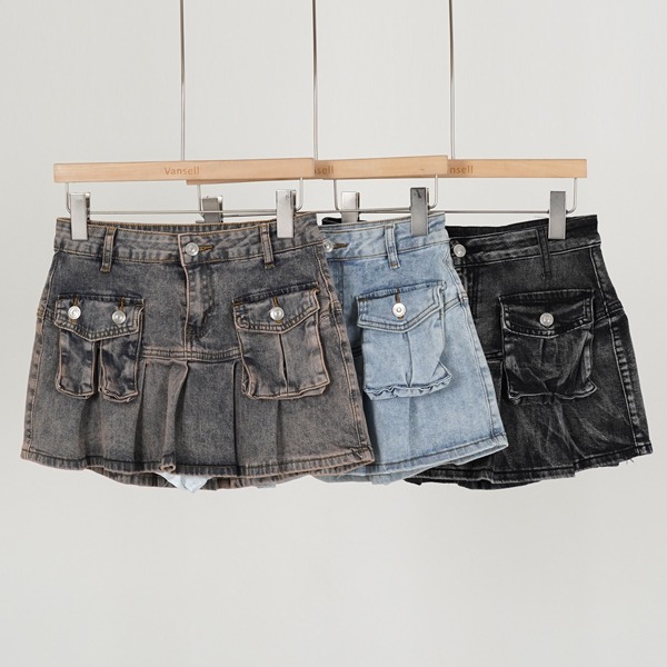 [3컬러/S,M,L] 포켓 워싱 데님 플리츠 미니 스커트 빈티지워싱 y2k 아이돌 청스커트 플리츠미니 여친룩 데이트룩 속바지안감