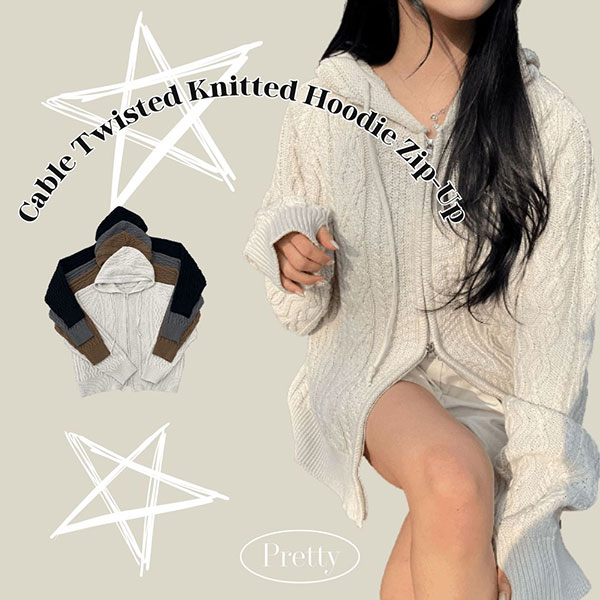 가을무드🤎 [투웨이] 케이블 꽈배기 니트 후드 집업 - 4color