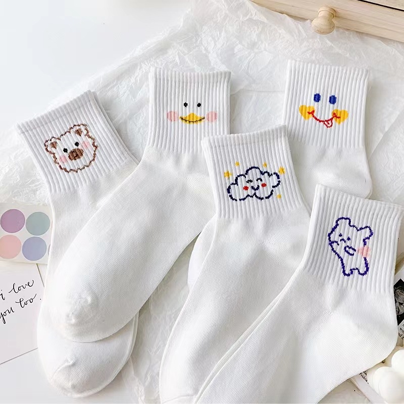 여성 귀여운 캐릭터 예쁜 패션 데일리 사계절 스니커즈 골지 흰 학생 양말 세트 귀욤캐릭터흰양말세트