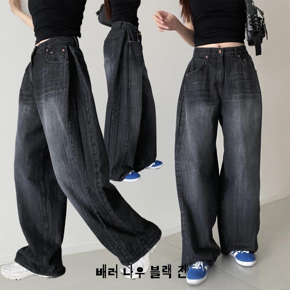 블랙진 ootj바지 흑청바지 여성블랙진 흑청데님 통청바지