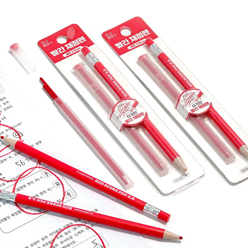 1+1 빨간 채점펜 빨간펜 + 리필심2개 세트 2.6mm 수험생 수능 선물 채점용빨간색연필