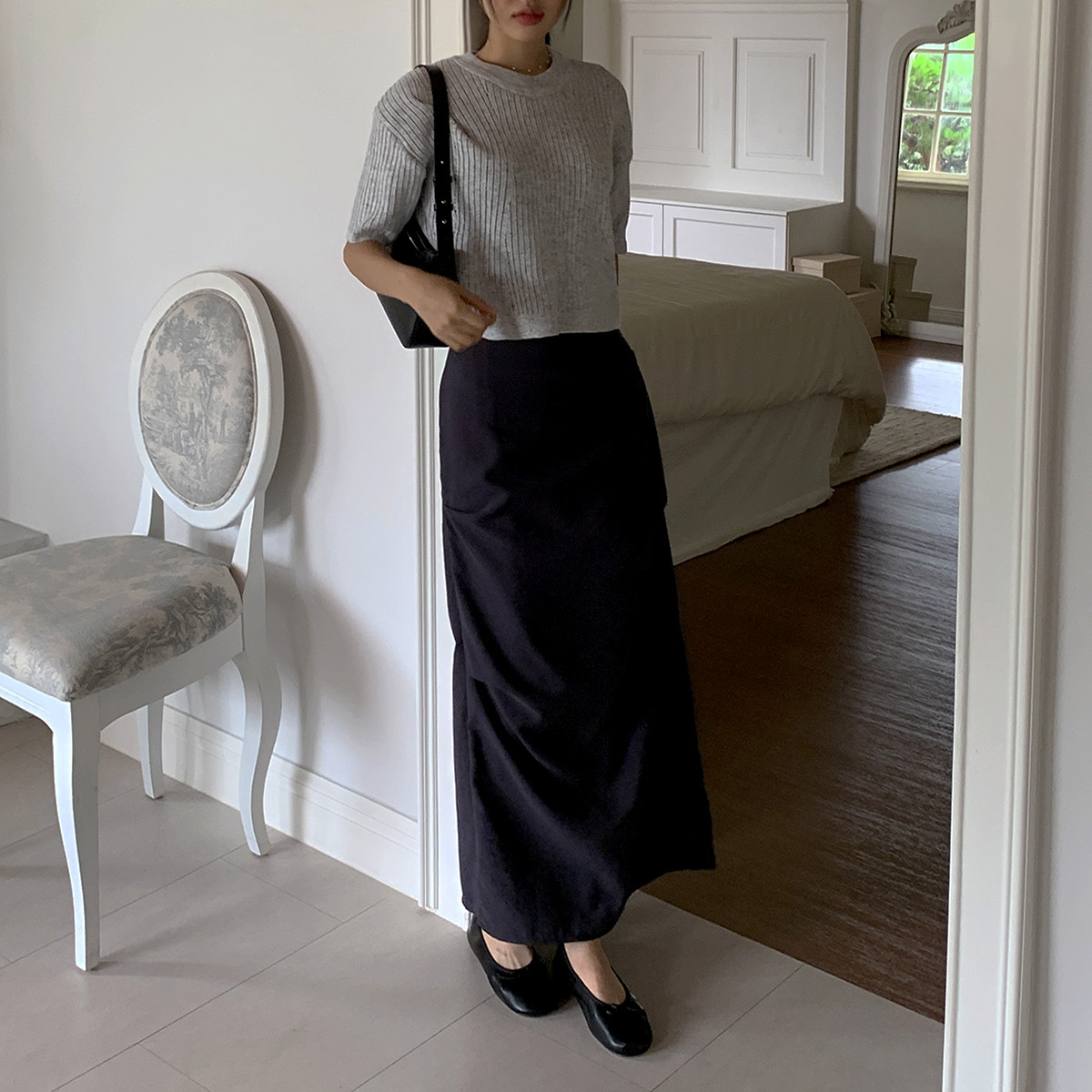 유트나 뒷밴딩 드레이핑 주름 피티드 에이라인 롱스커트