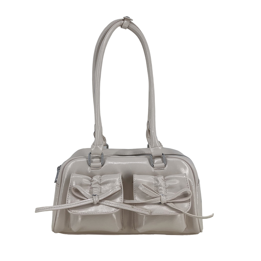 🎀러블리백🎀 리본 발레코어 미니 스퀘어 큐티 투포켓 실버 미니 가죽 숄더백 핑크 레드 버건디 가방 가을 하객룩 개강 새학기 페스티벌 화이트GB056