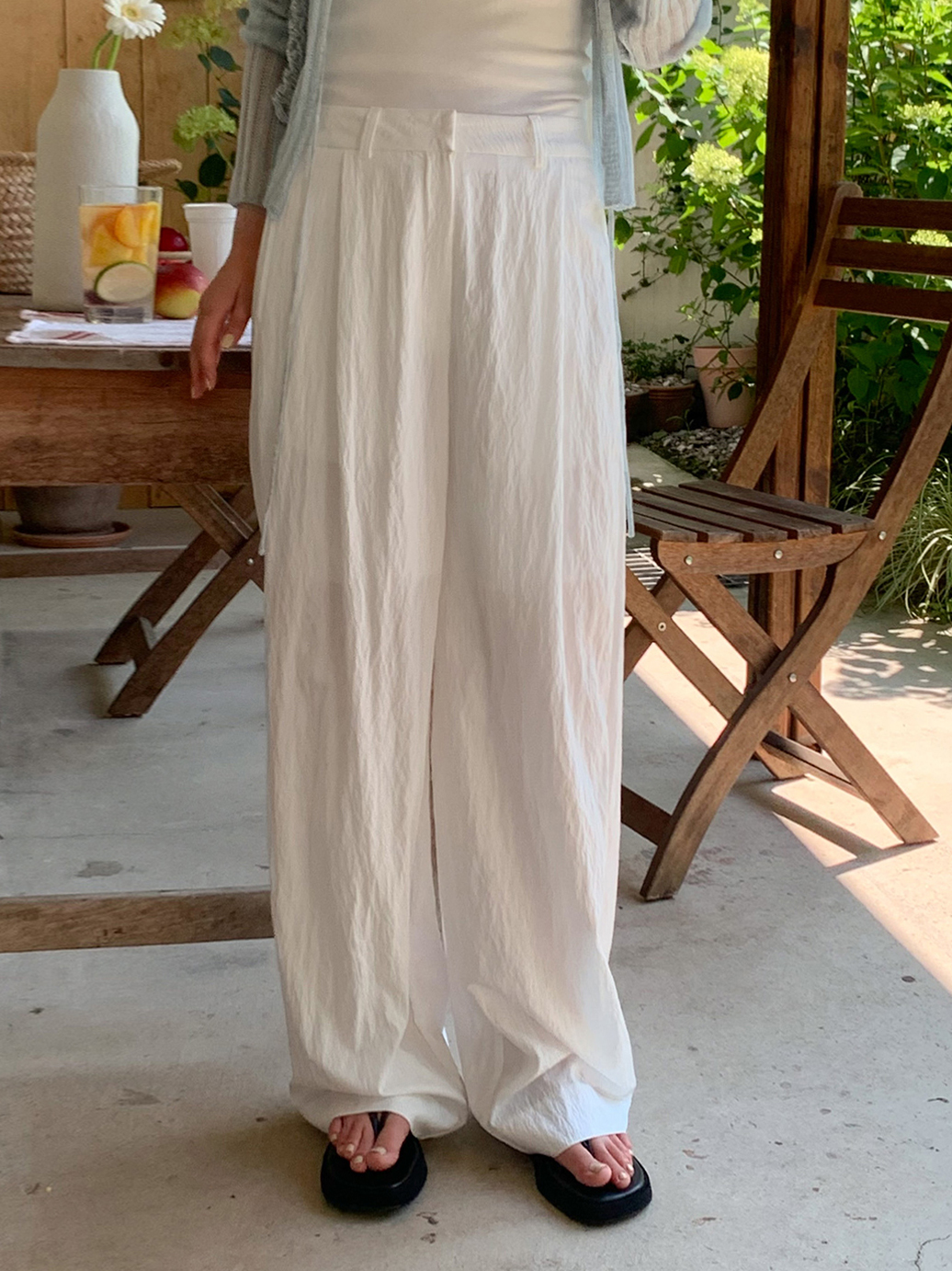 [안감O]리터 겨울 바스락 핀턱 와이드 나일론 슬랙스 팬츠(3color)