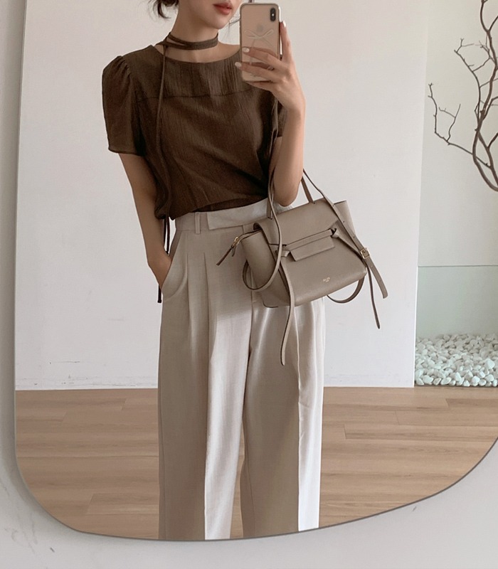 당일발송[하객룩/출근룩] 글레시 링클 스트랩 반팔 블라우스