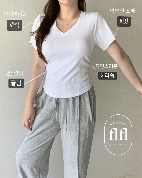 [made][flfl라벨]120.여시 팔넉넉 브이넥 셔링 반팔 티셔츠 7color