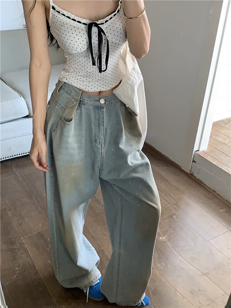 [데일리룩/데님코디] 빈티지 워싱 버클 포인트 와이드 데님 롱 팬츠