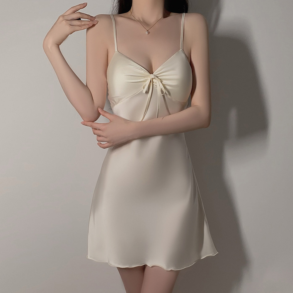 [사이즈추가/청순글램핏❤️] 새틴 리본셔링 캡내장 슬립 민소매 나시 원피스 빅사이즈 이너 레이어드 기본템 원피스잠옷