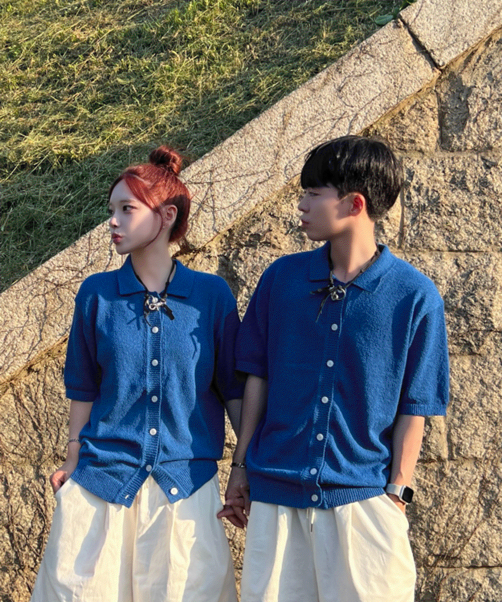 [단독/초특가/5컬러] 남녀공용 부클 카라 반팔 니트 가디건 무지 버뮤다 팬츠 밴딩 커플 시밀러룩 커플룩 여름 꾸안꾸 휴양지 신혼여행