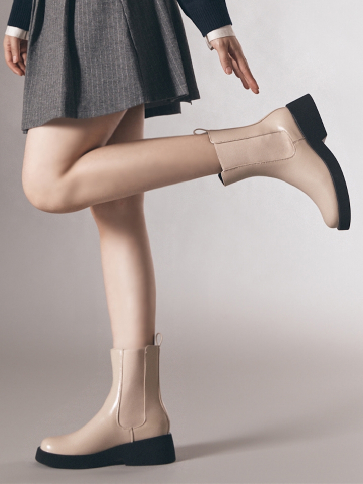 [시즌오프] 플랫폼 라운드토 첼시부츠 앵클부츠 5CM HPWXAEFT06