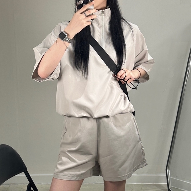 여름 아노락 바람막이 트레이닝 복 세트 [3color 윈드브레이커 운동복 반팔 밴딩 반바지 남녀공용 여성 루즈핏 여자 얇은 반집업 바지 츄리닝 마실룩 추리닝 썸머 옷]