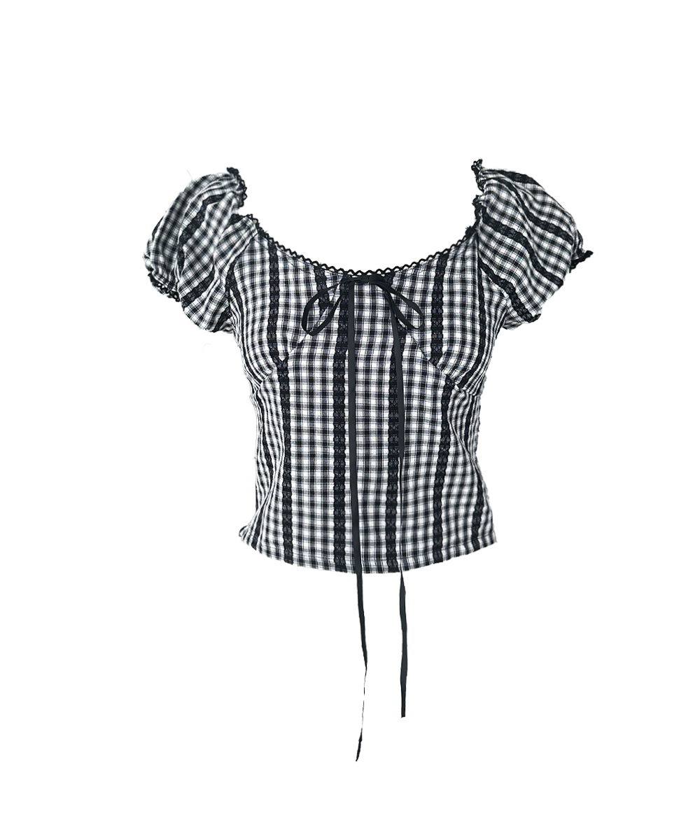 Tity checkered puff ribbon top