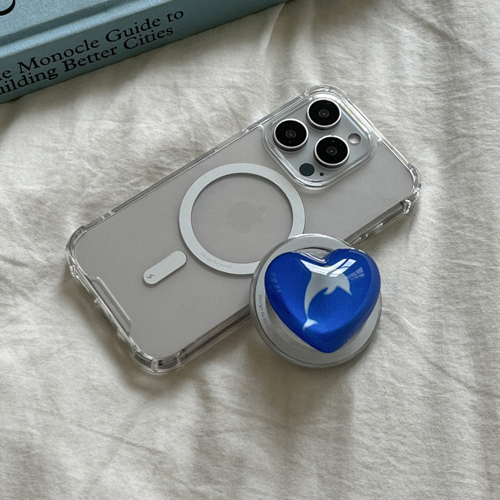 happy dolphin 아이폰 맥세이프 그립 톡홀더 구슬 하트 white