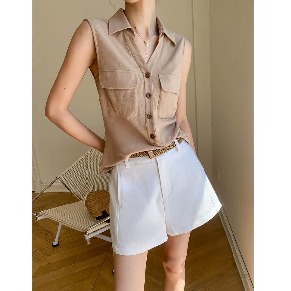민소매셔츠 조끼 포켓 비스코스 흰셔츠 베이지 나시 여름 포켓 블라우스