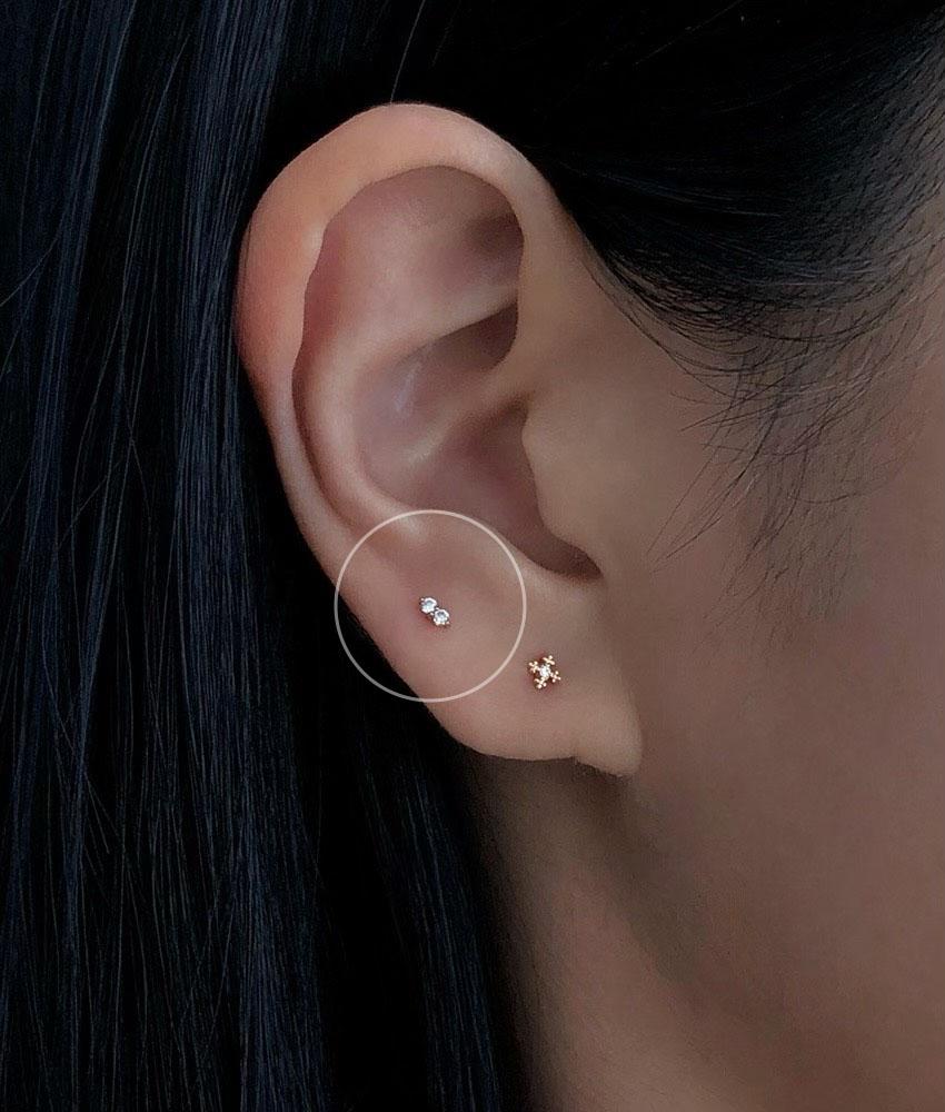 14k 미니 더블 큐빅 아웃컨츠 이너컨츠 피어싱