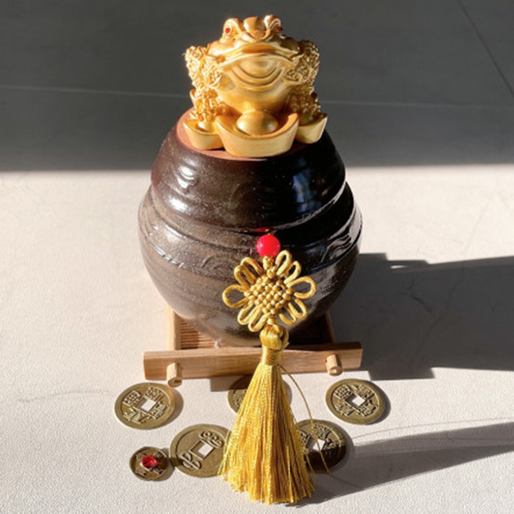 삼족두꺼비 현관 소금 단지 항아리 신발장 독 [행운 풍수 인테리어 소품 보관 옹기 집들이 개업 축하 선물 풍수지리 미니 전통 용기 작은 장독 템]