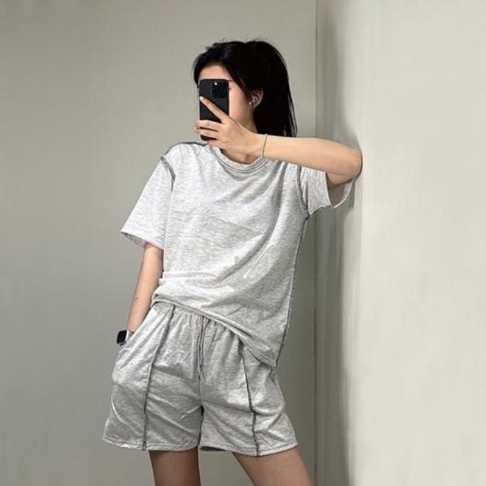 여성 편안한 꾸안꾸 트레이닝 세트 2컬러 - 스웻팬츠 셋업 스티치 츄리닝 루즈핏 스티치반팔 트레이닝복 편한 밴딩 스티치반바지 런닝복 여름 운동복 츄리닝세트