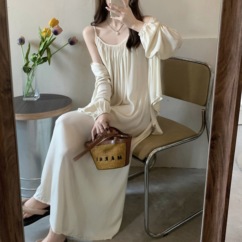 set 하늘하늘 루즈핏 셔츠 롱원피스 세트 청순 페미닌 여성스러운 여리 아방 낙낙 데이트 여친 룩 러블리 귀여운 여름 썸머 비치 웨어 휴양지 바캉스 룩
