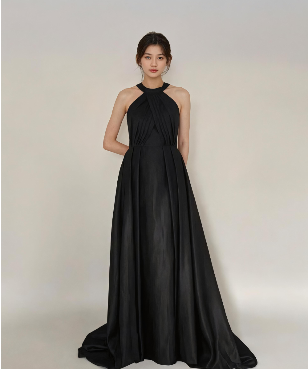 홀터넥 블랙드레스 셀프웨딩 스냅촬영 연주회 피로연 2부 드레스