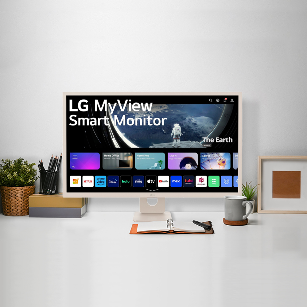 [혜택가 25만] LG 32SR50FE MyView 스마트모니터 32인치 IPS패널 OTT 특화 내장스피커 파스텔톤 베이지색 집테리어 특화 1인가구 생활탬