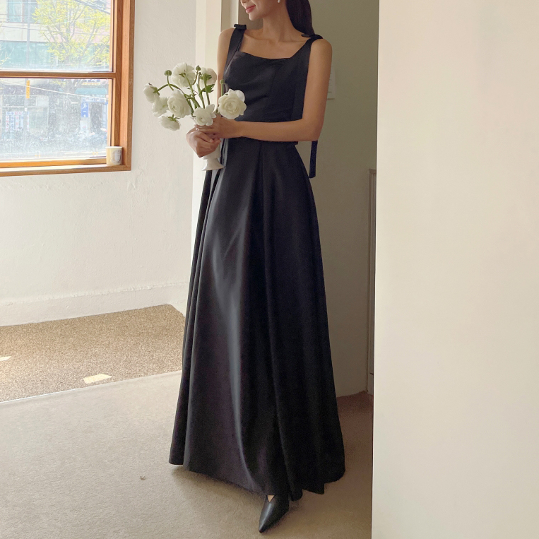 누적5000장,🔥주문폭주, 양리본 블랙 셀프웨딩 원피스 2color, 화이트 민소매 브라이덜샤워 스냅촬영 새틴 2부 드레스