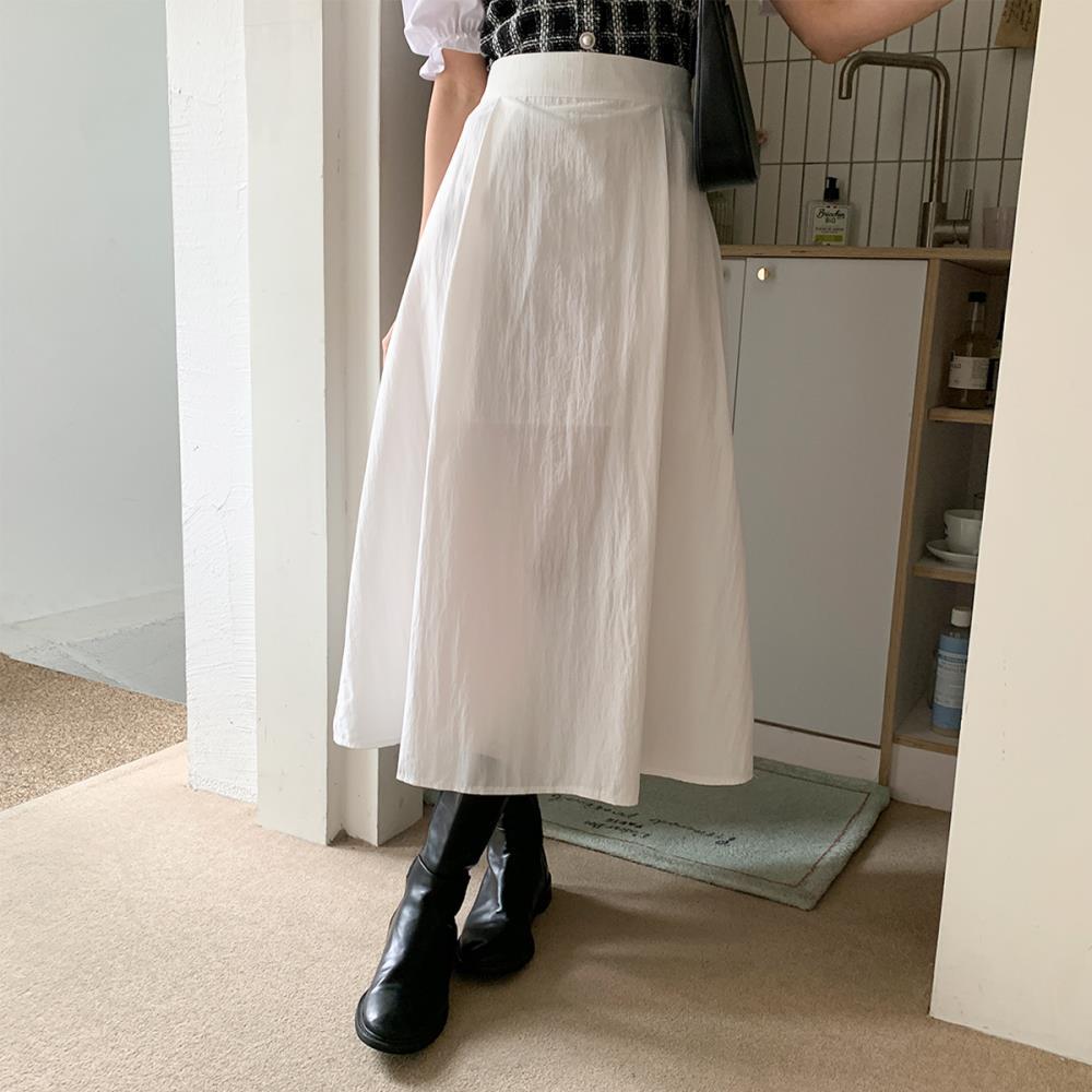 타가리 스프링 긴치마 여성 바스락 핀턱 밴딩