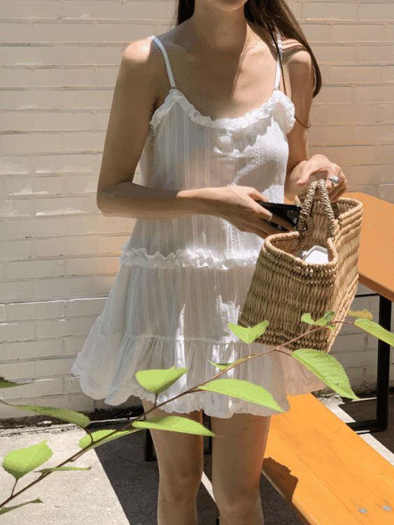 [끈조절가능]히피 프릴 레이스 끈나시 뷔스티에 미니원피스(2color)