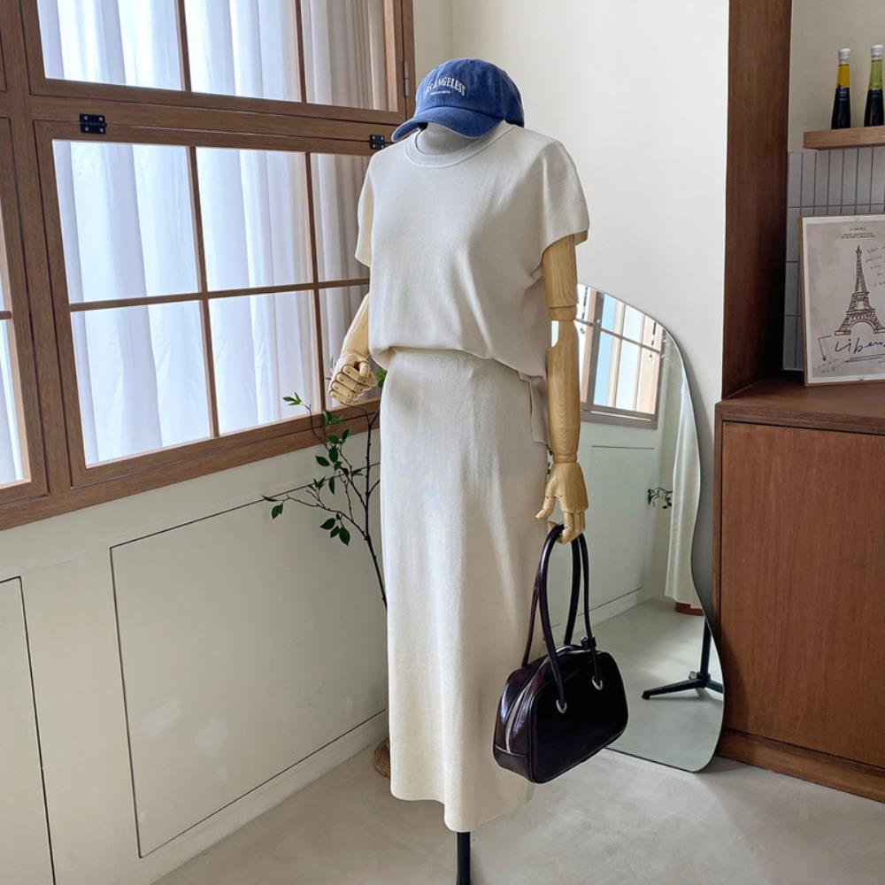 키드베 치마 여성 밴딩 스웨터 투피스 긴 썸머 일자라인